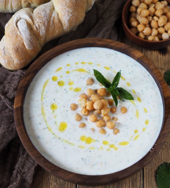 Kürbis-Kartoffelsuppe mit Rucola & Vollkorn-Protein-Naan