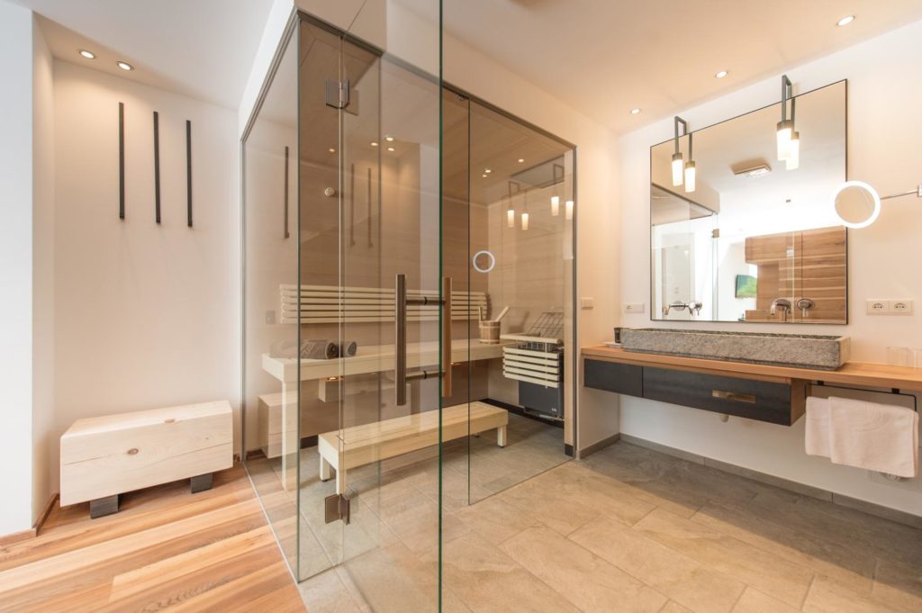 In der oberen Etage des Purmontes befindet sich ein sagenhaftes Loft-Spa mit fantastischem Blick auf die Dolomiten.