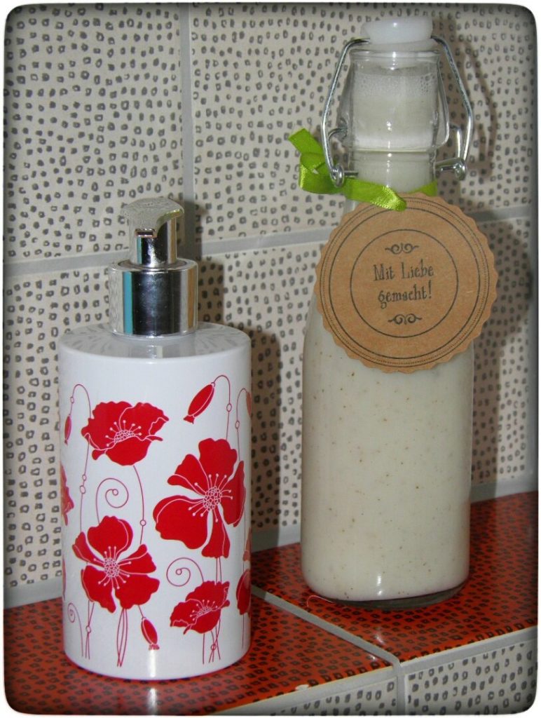 Das Mandelöl hilft gegen trockene Haut (wenn man sehr fettige Haut hat, dann die Menge reduzieren). Alternativ könntet ihr auch Jojobaöl oder Olivenöl nutzen. Das Glycerin & Honig spenden der Haut Feuchtigkeit. Und das ätherische Vanilleöl & die gemahlene Vanille sind natürlich für den Duft zuständig. Falls Du Vanille nicht magst, darfst du natürlich auch gerne ein anderes ätherisches Öl benutzen.