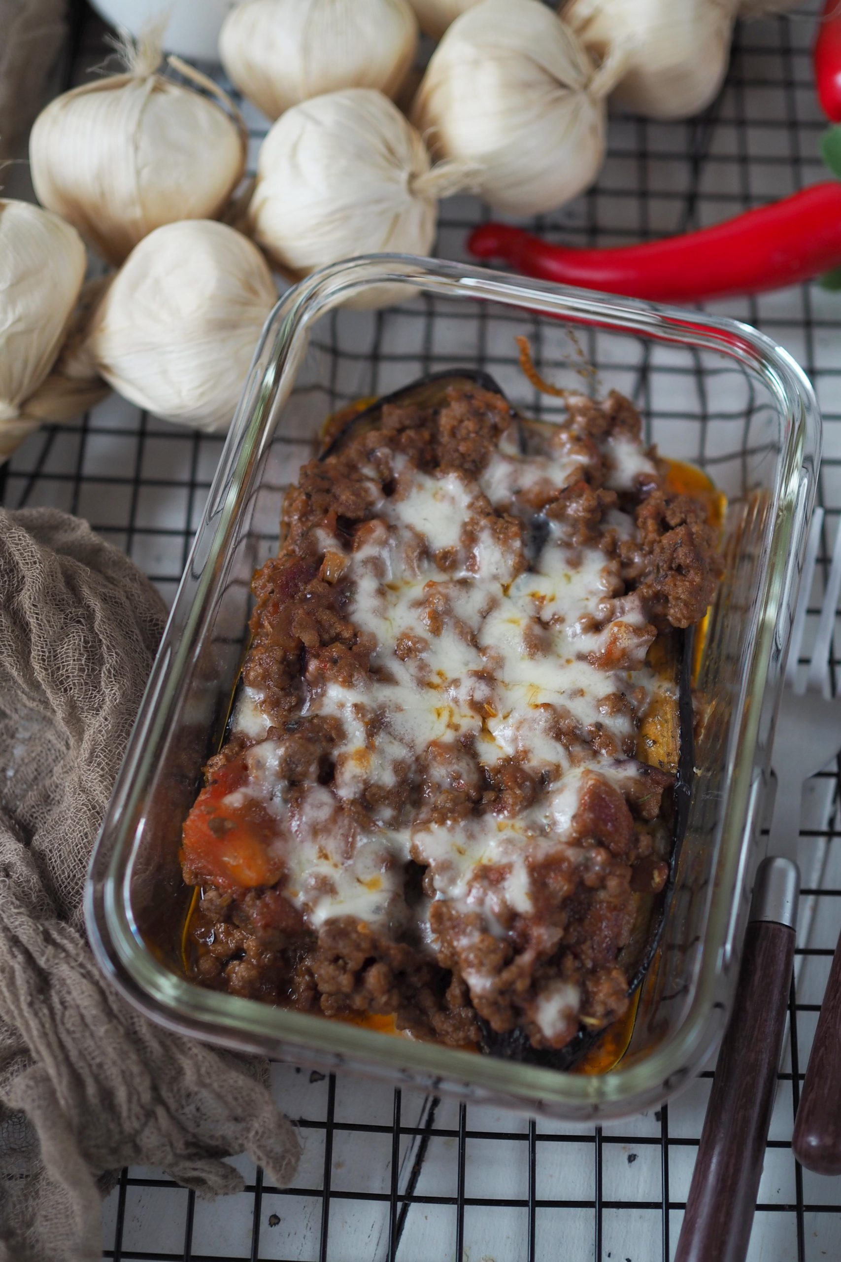 - Im vorgeheizten Backofen ca. 20 Minuten bei 225 Grad backen. Kurz rausnehmen und den restlichen Käse darüber verteilen und nochmals ca. 20 Minuten gratinieren.