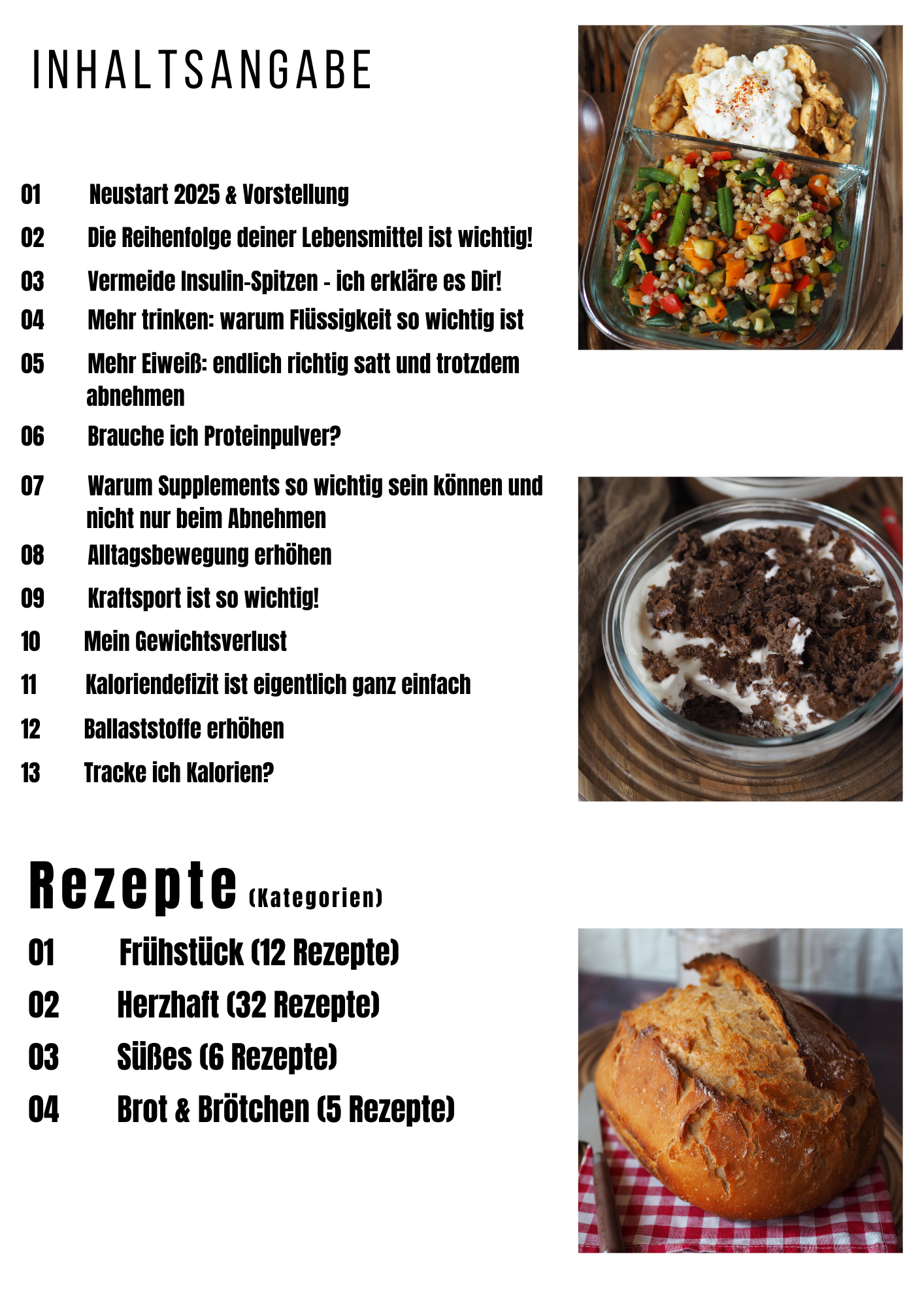 Wenn du 2026 neu durchstarten möchtest und dir eine alltagstaugliche, strukturierte Lösung wünschst, dann sichere dir mein E-Book in der Meal-Prep-Edition inklusive Nährwerten. Gerade wenn du in der Perimenopause oder Menopause bist oder mit einer Schilddrüsenthematik zu tun hast (ich selbst habe zum Beispiel gar keine Schilddrüse mehr), braucht Abnehmen eine andere, kluge Herangehensweise.