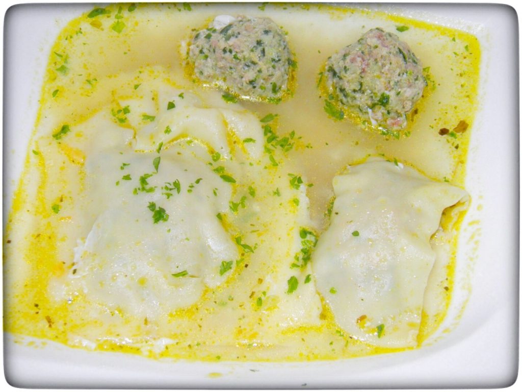Wenn die Maultaschen fertig sind und noch Teig übrig ist, dann forme ich runde Kügelchen und diese lasse ich dann ebenfalls mit in der Brühe ziehen. Für die Brühe nutze ich ebenfalls nur Gemüsepaste und Rinderpaste und darin lasse ich auf langsamer Stufe die schwäbischen Maultaschen ziehen.