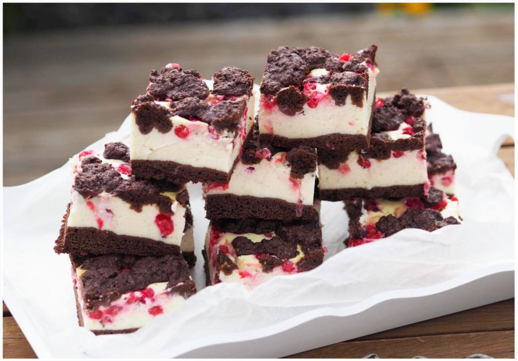 - Johannisbeer-Schnitten mit Schokoboden und Zimtstreuseln