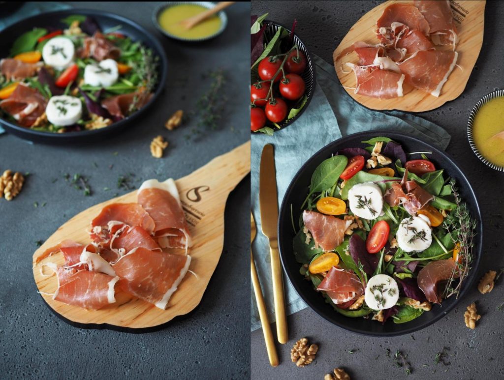 Der gute und aromatische Serranoschinken in Verbindung mit Ziegenkäse und fruchtigem Dressing ist einfach eine Sensation.